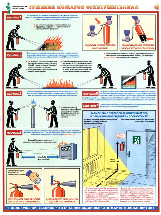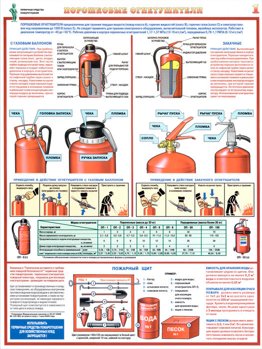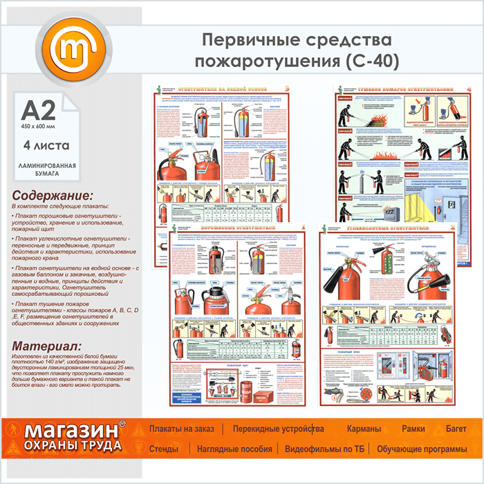 Плакаты «Первичные средства пожаротушения» (С-40, ламинированная бумага, А2, 4 листа) в Щёлково купить