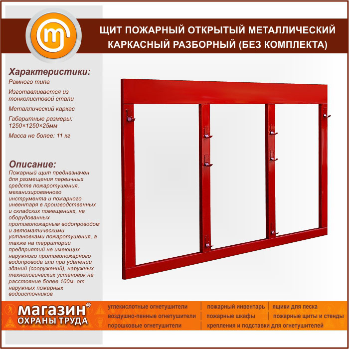 Щит пожарный открытый металлический каркасный разборный (без комплекта) в Щёлково купить