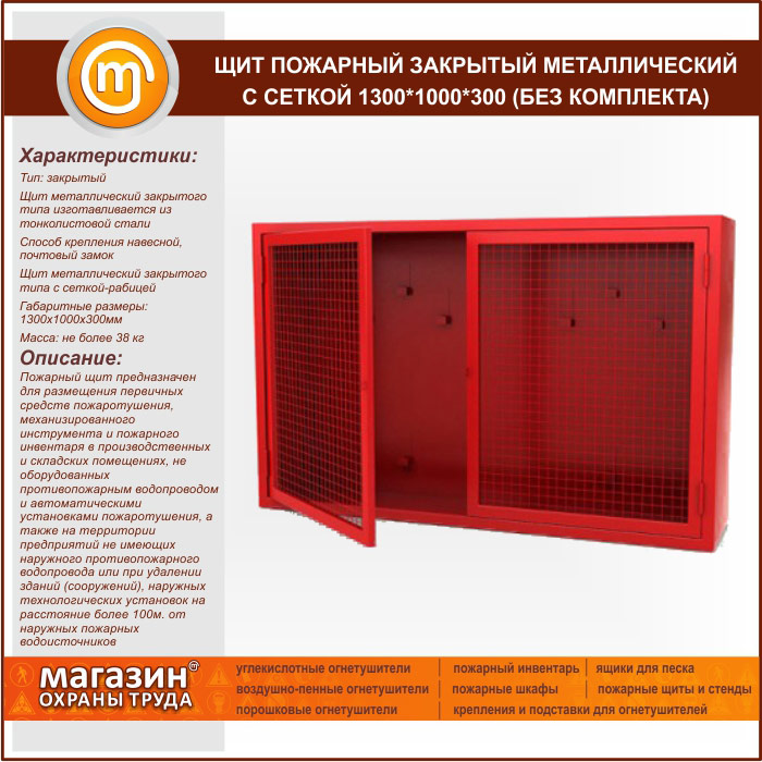 Щит пожарный закрытый металлический с сеткой 1300*1000*300 (без комплекта) в Щёлково купить