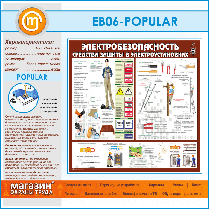 Стенд «Электробезопасность. Средства защиты в электроустановках» (EB-06-POPULAR)
