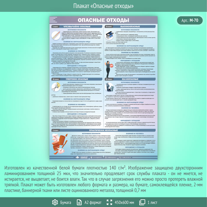 Плакат «Опасные отходы» (М-70, ламинированная бумага, А2, 1 лист) в Щёлково купить