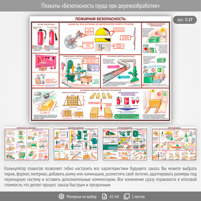 Плакаты «Безопасность труда при деревообработке» (С-17, 5 листов) в Щёлково купить