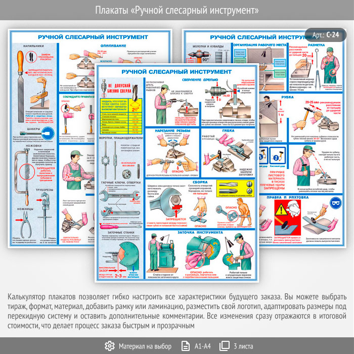 Плакаты «Ручной слесарный инструмент» (С-24, 3 листа) в Щёлково купить