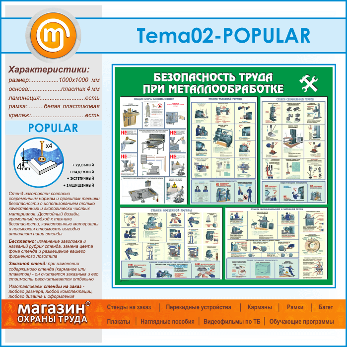 Стенд «Безопасность труда при металлообработке» (TM-02-POPULAR) в Щёлково купить