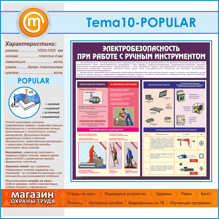 Стенд «Электробезопасность при работе с ручным инструментом» (TM-10-POPULAR) в Щёлково купить