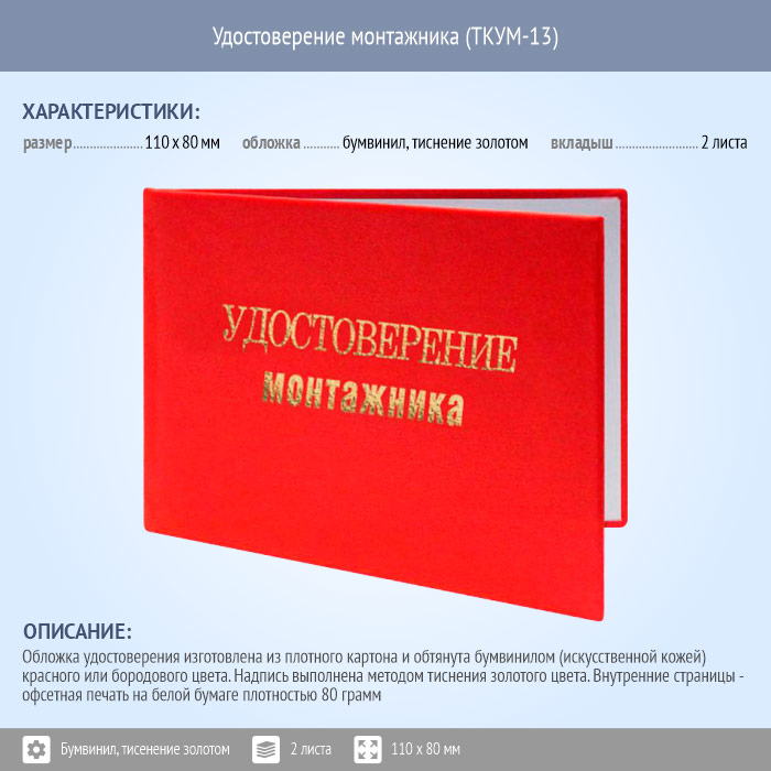 Бланк удостоверения монтажника (ТКУМ-13) в Щёлково купить
