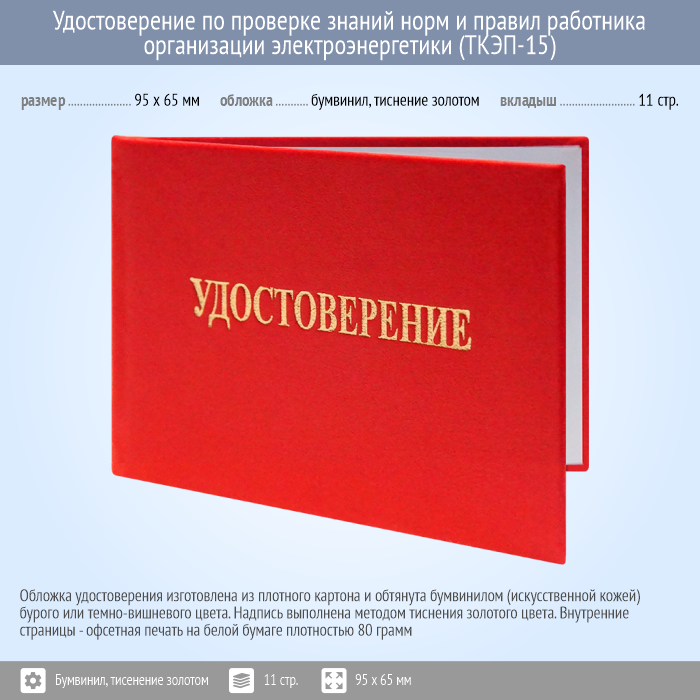 Бланк удостоверения по проверке знаний норм и правил работника организации электроэнергетики (ТКЭП-15) в Щёлково купить