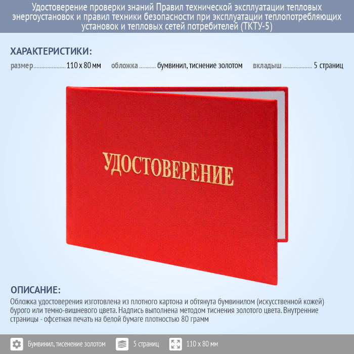 Бланк удостоверения проверки знаний Правил технической эксплуатации тепловых энергоустановок и правил техники безопасности при эксплуатации теплопотребляющих установок и тепловых сетей потребителей (ТКТУ-5) в Щёлково купить