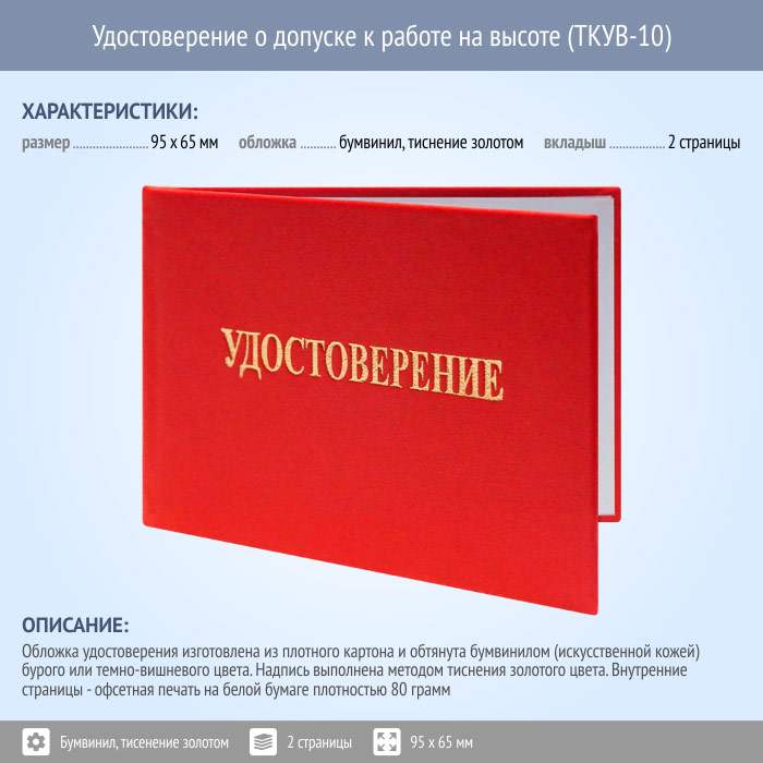Бланк удостоверения о допуске к работе на высоте (ТКУВ-10) в Щёлково купить