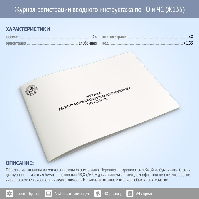 Журнал регистрации вводного инструктажа по ГО и ЧС (48 стр., Ж135) в Щёлково купить