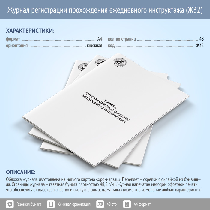 Журнал регистрации прохождения ежедневного инструктажа (Ж32) в Щёлково купить