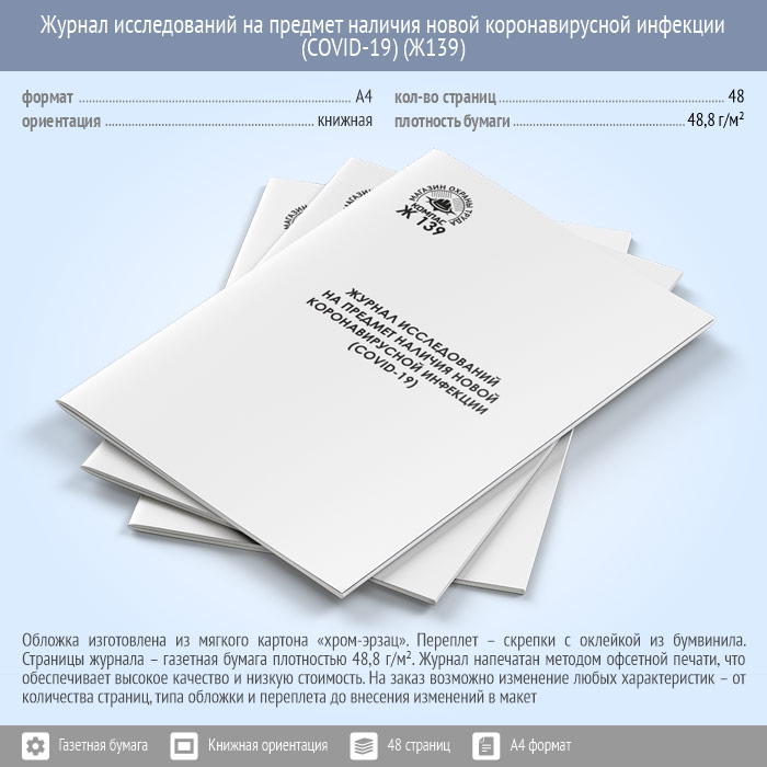 Журнал исследований на предмет наличия новой коронавирусной инфекции (COVID-19) (48 стр., Ж139) в Щёлково купить