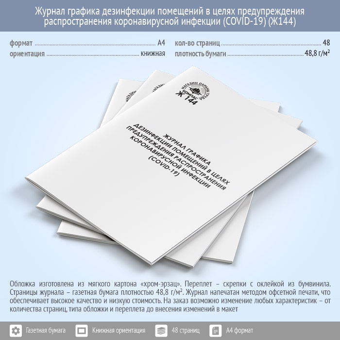 Журнал графика дезинфекции помещений в целях предупреждения распространения коронавирусной инфекции (COVID-19) (48 стр., Ж144) в Щёлково купить