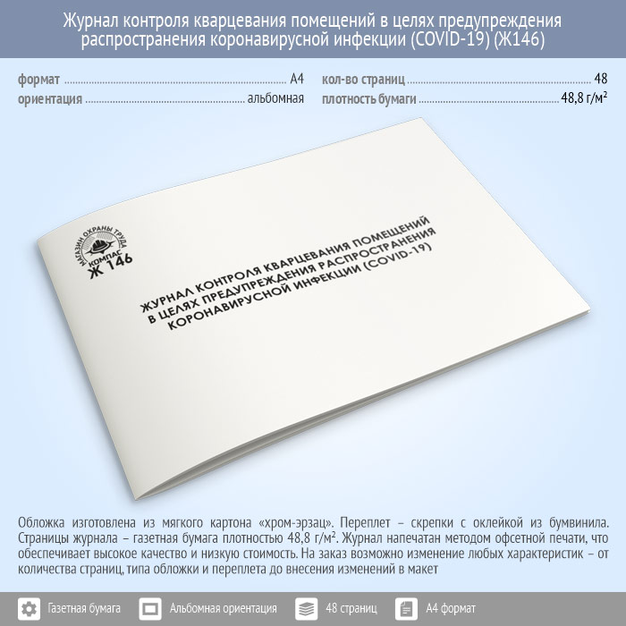 Журнал контроля кварцевания помещений в целях предупреждения распространения коронавирусной инфекции (COVID-19) (48 стр., Ж146) в Щёлково купить