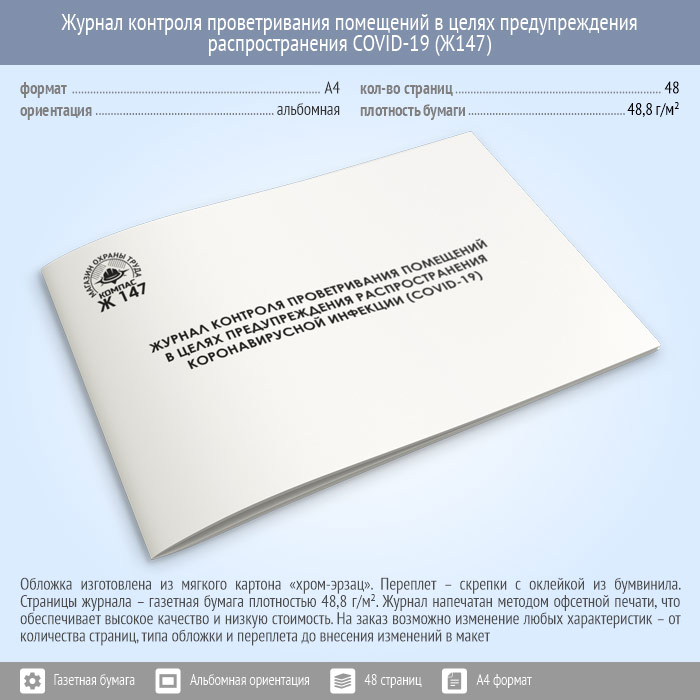 Журнал контроля проветривания помещений в целях предупреждения распространения коронавирусной инфекции (COVID-19) (48 стр., Ж147) в Щёлково купить
