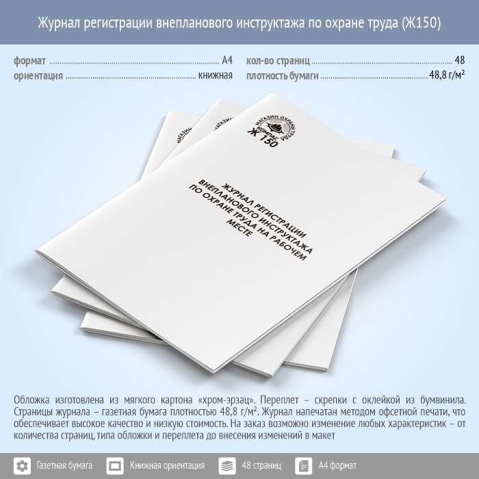 Журнал регистрации внепланового инструктажа по охране труда (48 стр., Ж150) в Щёлково купить