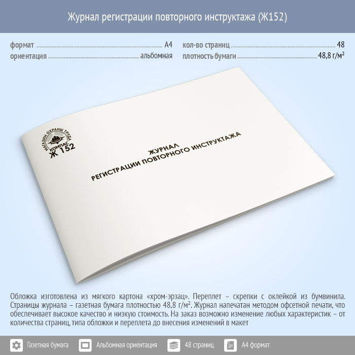 Журнал регистрации повторного инструктажа (48 стр., Ж152) в Щёлково купить