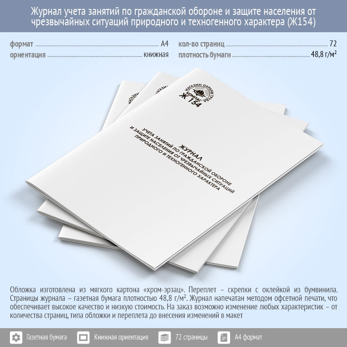 Журнал учета занятий по гражданской обороне и защите населения от чрезвычайных ситуаций природного и техногенного характера (72 стр., Ж154) в Щёлково купить