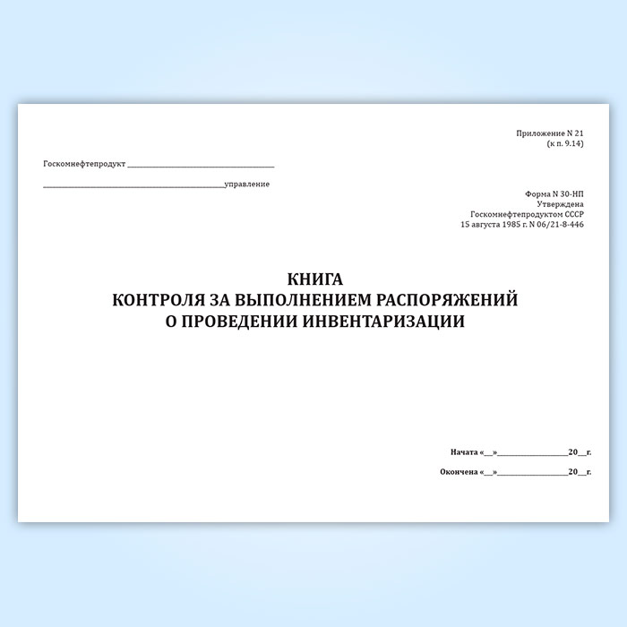 Книга контроля за выполнением распоряжений о проведении инвентаризации (форма № 30-НП) в Щёлково купить