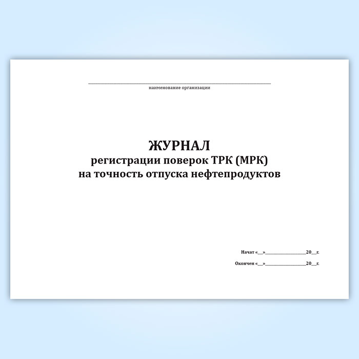Журнал регистрации поверок ТРК (МРК) на точность отпуска нефтепродуктов в Щёлково купить