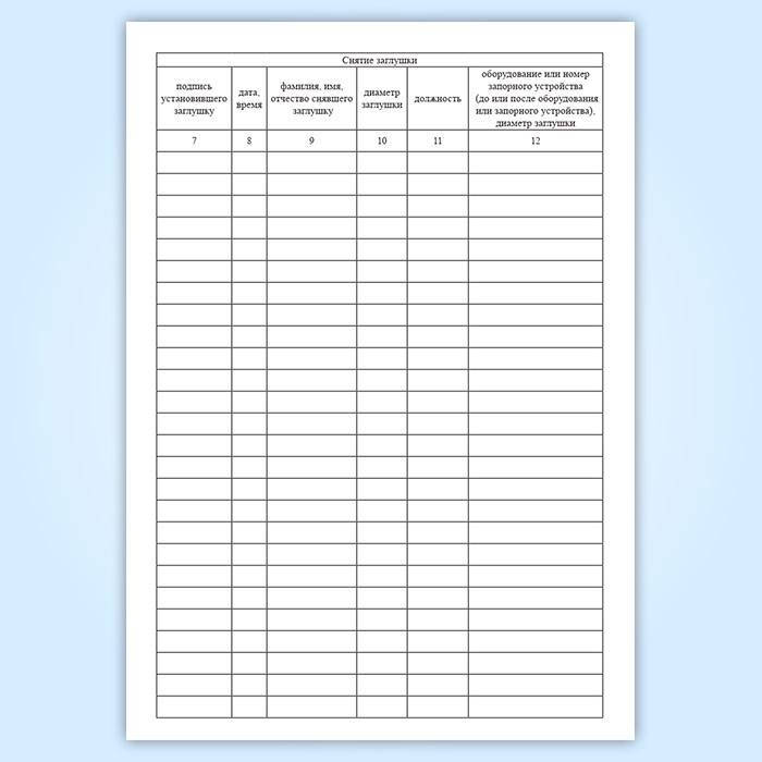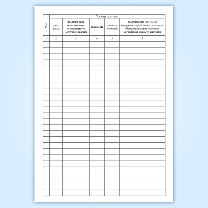 Журнал установки и снятия заглушек в Щёлково купить