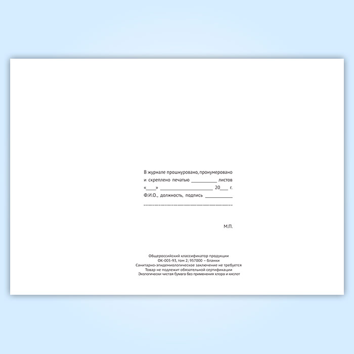 Вы получаете печатную продукцию прошнурованной и c местом для вашей печати в соответствии с действующими нормативными документами: