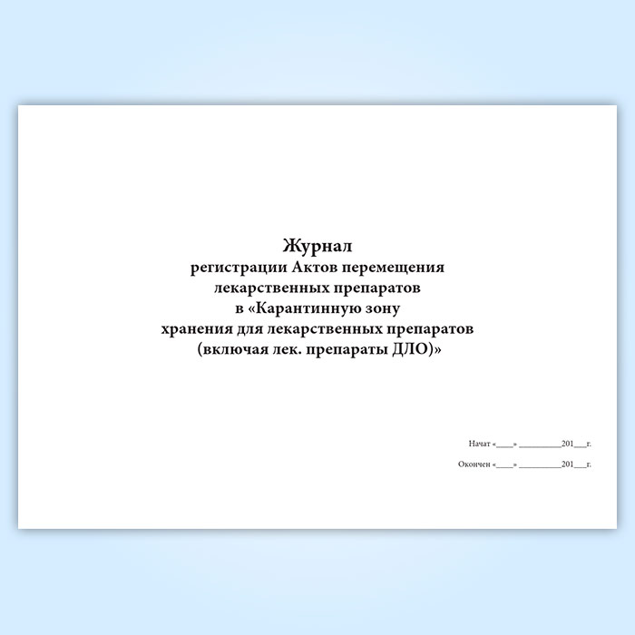 Журнал регистрации Актов перемещения лекарственных препаратов в «Карантинную зону хранения для лекарственных препаратов (включая лек. препараты ДЛО)» в Щёлково купить