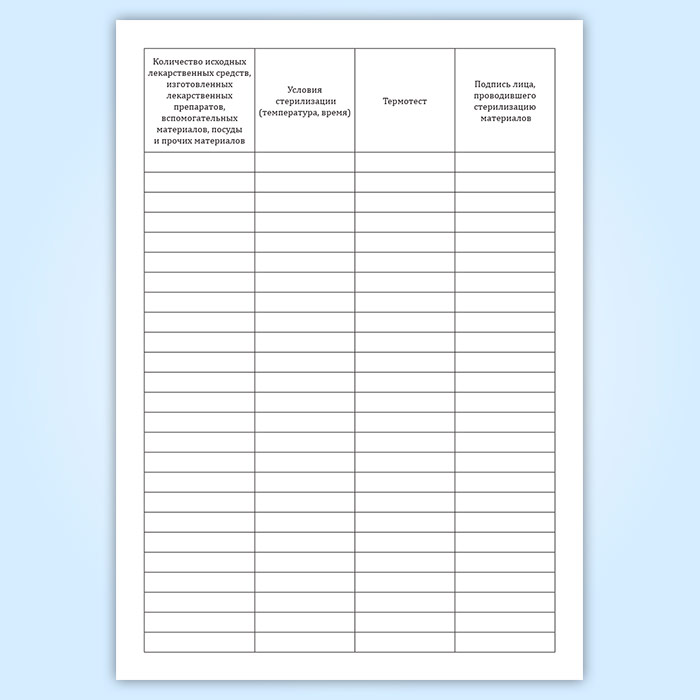 Журнал регистрации режима стерилизации исходных лекарственных средств, изготовленных лекарственных препаратов, вспомогательных материалов, посуды и прочих материалов в Щёлково купить