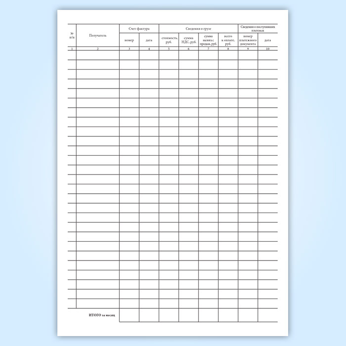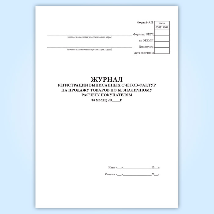 Журнал регистрации выписанных счетов-фактур на продажу товаров по безналичному расчету покупателям (форма 9-АП) в Щёлково купить