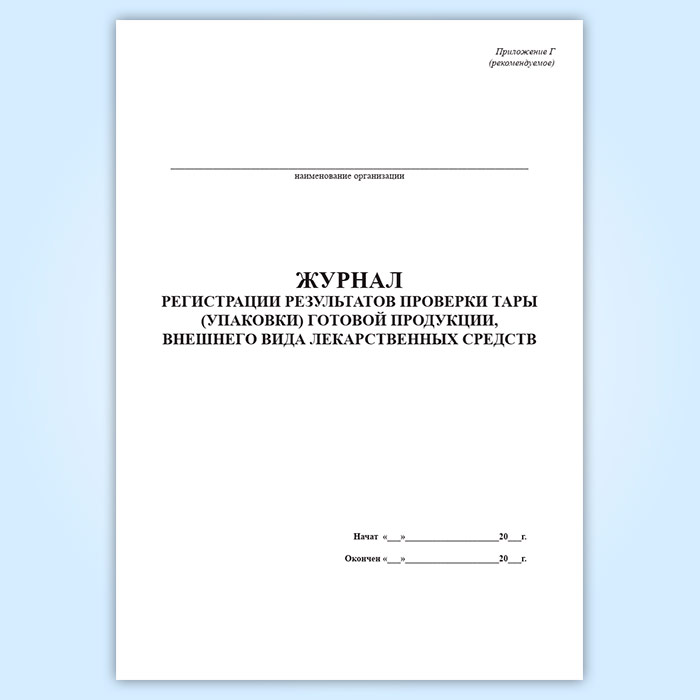 Журнал регистрации результатов проверки тары (упаковки) готовой продукции, внешнего вида лекарственных средств (форма Г) в Щёлково купить