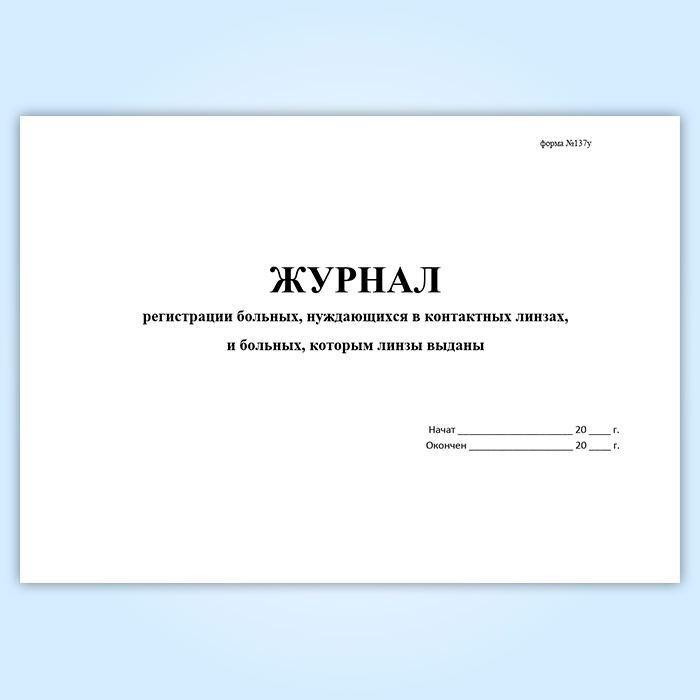 Журнал регистрации больных, нуждающихся в контактных линзах, и больных, которым линзы выданы (форма № 137/у) в Щёлково купить