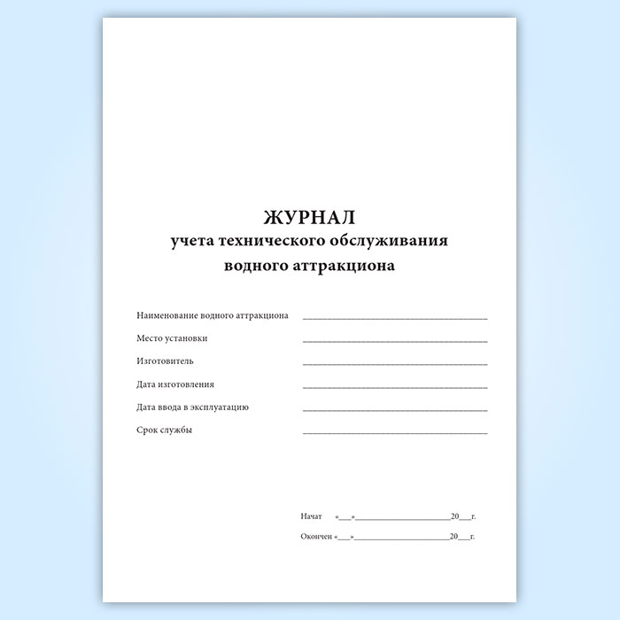 Журнал учета технического обслуживания водного аттракциона в Щёлково купить