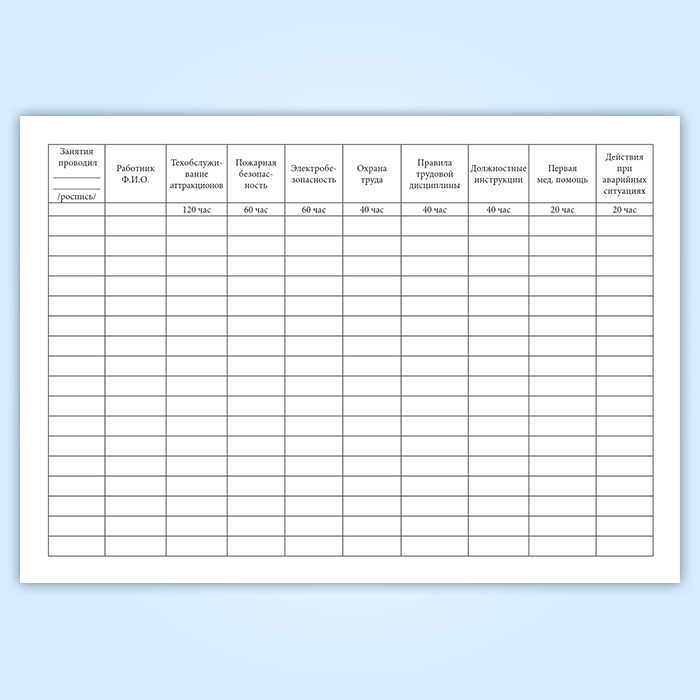 Журнал по обучению персонала передвижного городка аттракционов в Щёлково купить