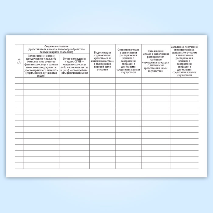 Журнал учета отказов в выполнении распоряжения клиентов о совершении операции с денежными средствами и иным имуществом в Щёлково купить