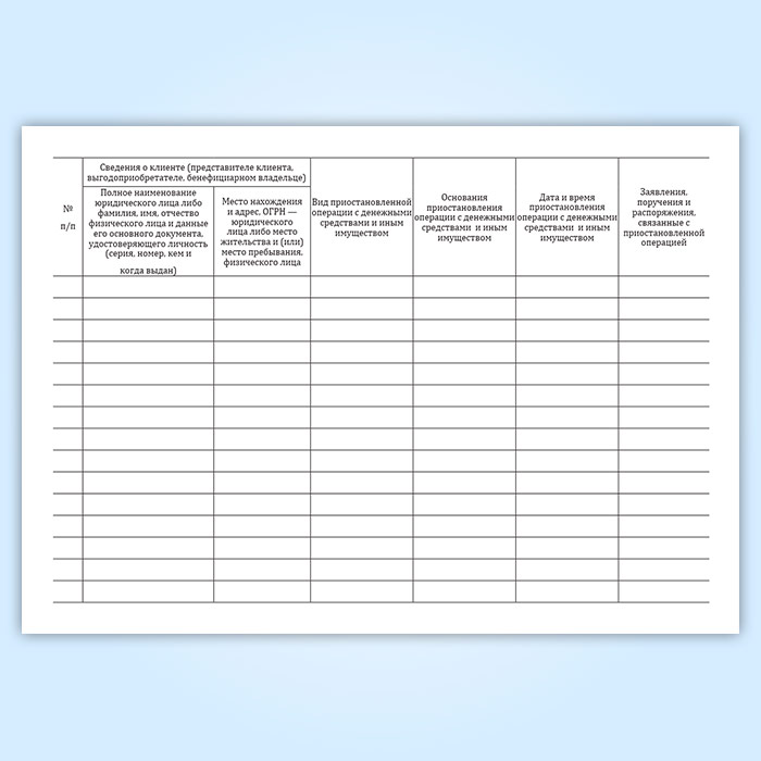 Журнал учета приостановленных операций с денежными средствами и иным имуществом клиента в Щёлково купить