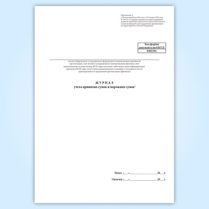 Журнал учета принятых сумок и порожних сумок (форма по ОКУД 0402301) в Щёлково купить