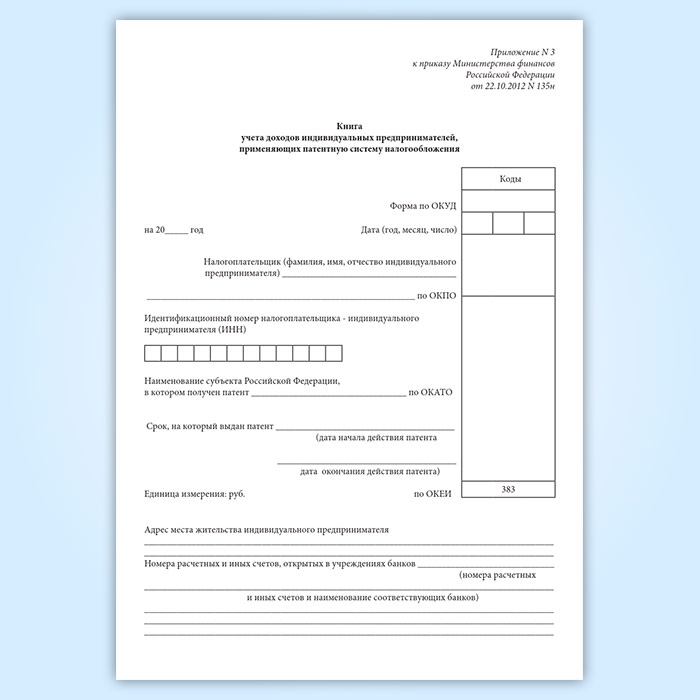 Книга учета доходов индивидуальных предпринимателей, применяющих патентную систему налогообложения в Щёлково купить