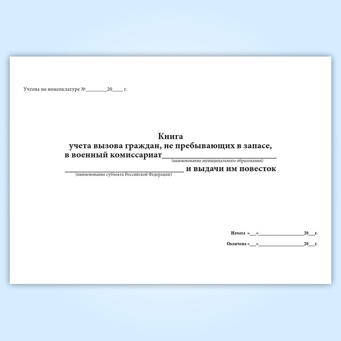 Книга учета вызова граждан, не пребывающих в запасе, в военный комиссариат и выдачи им повесток в Щёлково купить
