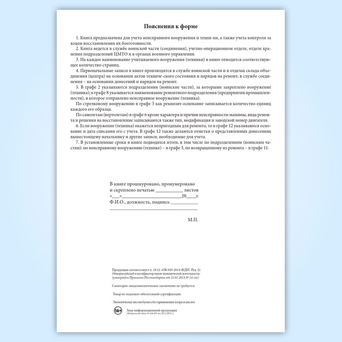 Книга учета неисправного вооружения и военной техники (форма 19) в Щёлково купить