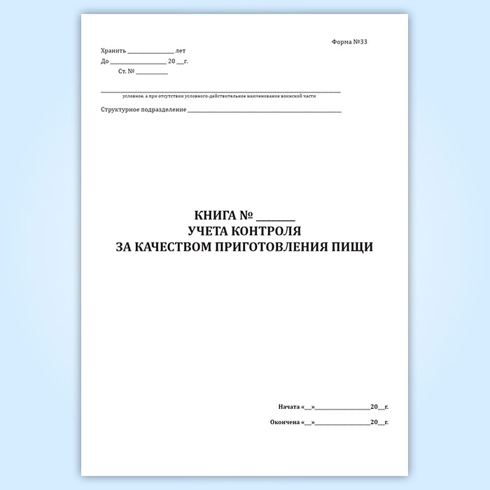 Книга учета контроля за качеством приготовления пищи (форма 33) в Щёлково купить