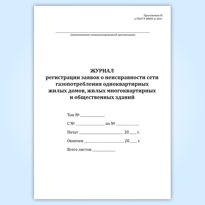 Журнал регистрации заявок о неисправности сети газопотребления одноквартирных жилых домов, жилых многоквартирных и общественных зданий в Щёлково купить