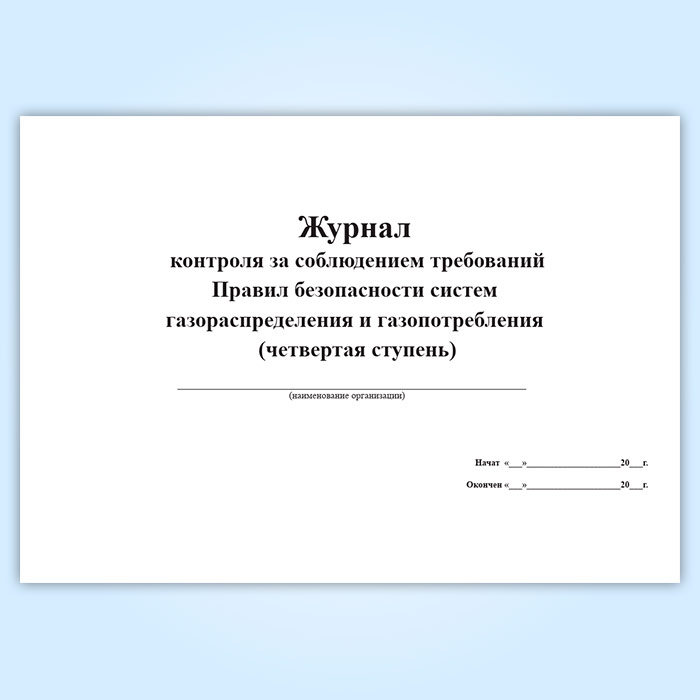 Журнал контроля за соблюдением требований Правил безопасности систем газораспределения и газопотребления (четвертая ступень) в Щёлково купить