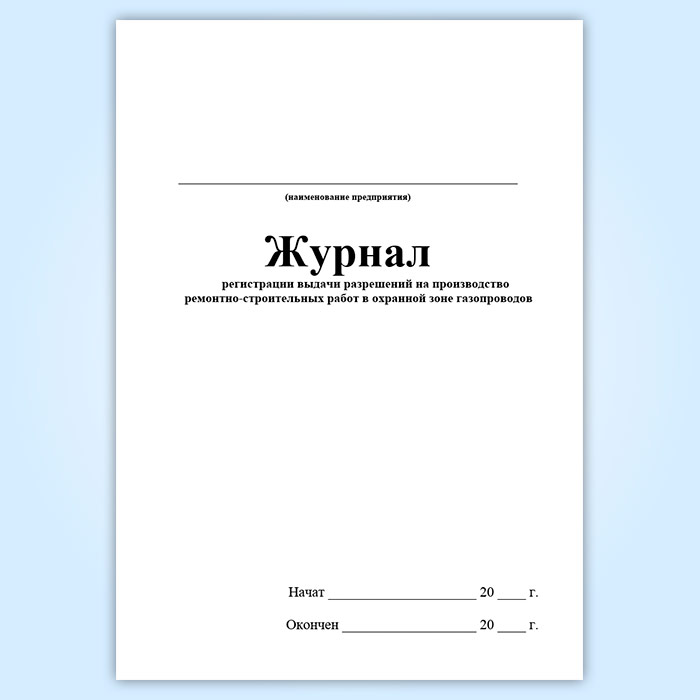 Журнал регистрации выдачи разрешений на производство ремонтно-строительных работ в охранной зоне газопроводов (ГЭГ-14) в Щёлково купить