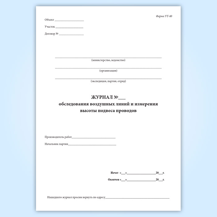 Журнал обследования воздушных линий и высоты подвеса проводов (форма УТ-40) в Щёлково купить