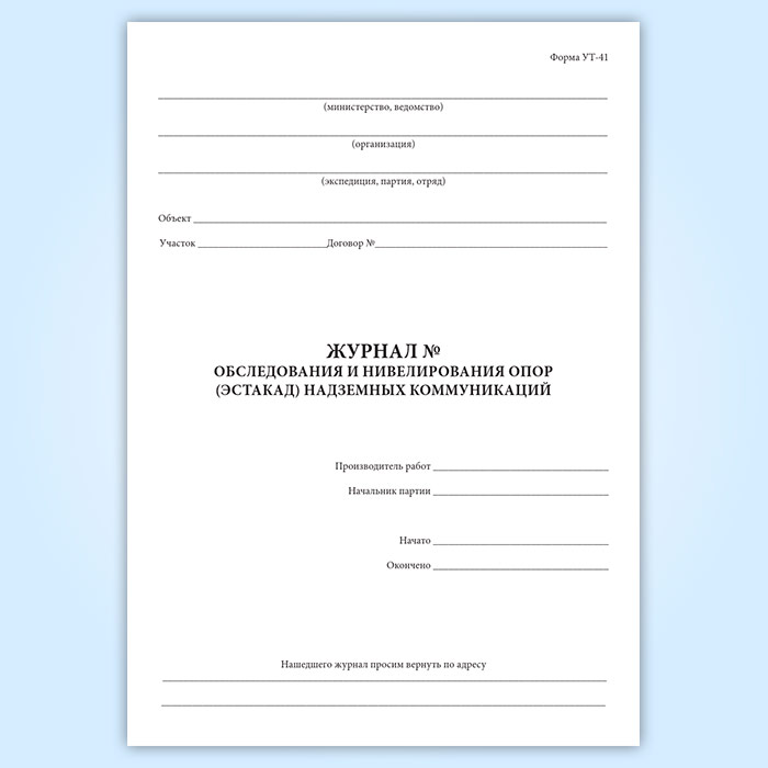 Журнал обследования и нивелирования опор (эстакад) надземных коммуникаций (форма УТ-41) в Щёлково купить
