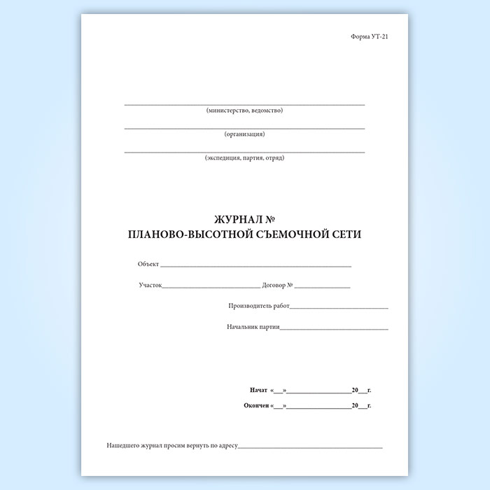 Журнал планово-высотной съемочной сети (форма УТ-21) в Щёлково купить