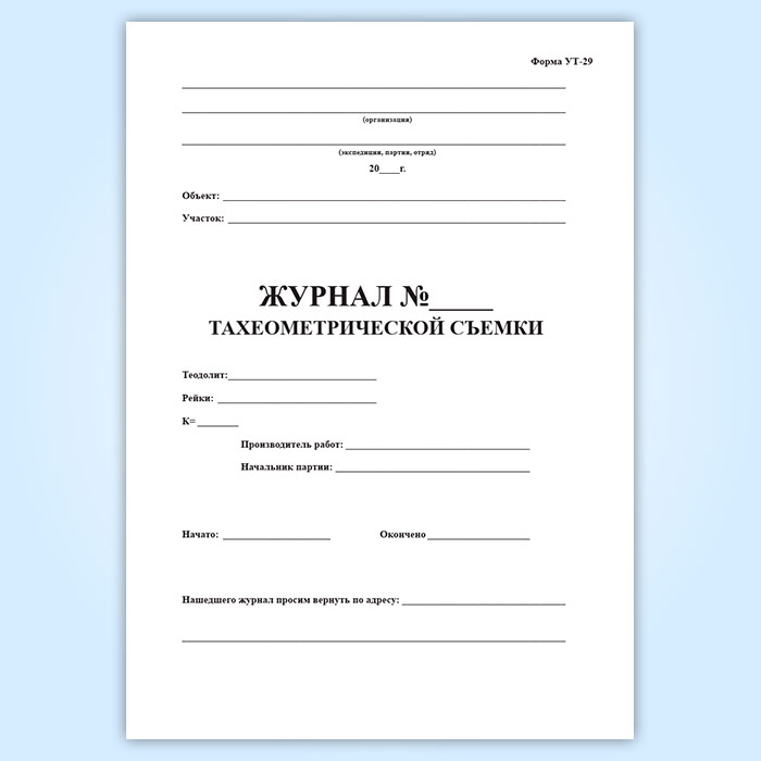 Журнал тахеометрической съемки (форма УТ-29) в Щёлково купить