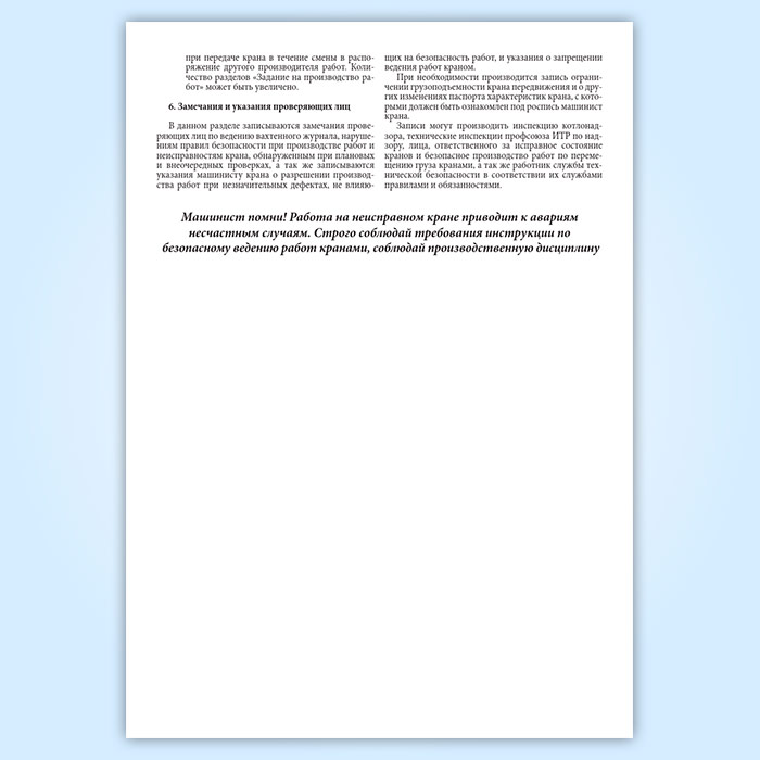 Вахтенный журнал приема-сдачи смен машинистами крана в Щёлково купить