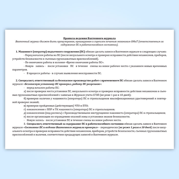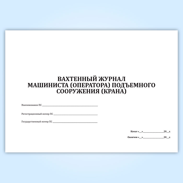 Вахтенный журнал машиниста (оператора) подъемного сооружения (крана) в Щёлково купить