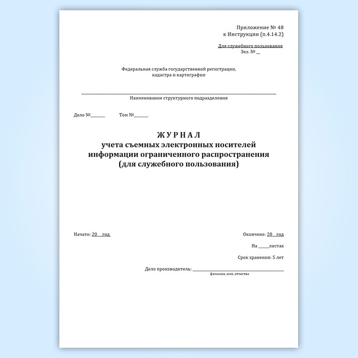 Журнал учета съемных электронных носителей информации ограниченного распространения (для служебного пользования) в Щёлково купить